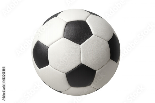 © PNG Kingdom , Obraz premium Soccer ball spinning, transparent backdrop highlighting spherical motion, perfect for dynamic sports graphic design elements