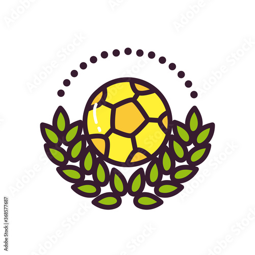 Obraz premium Soccer ball with leaves wreath line and fill style icon vector design