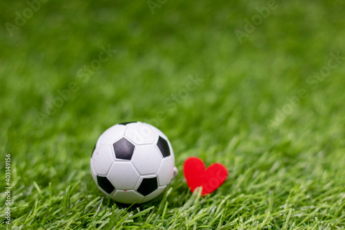 Obraz premium Soccer ball with love on green grass