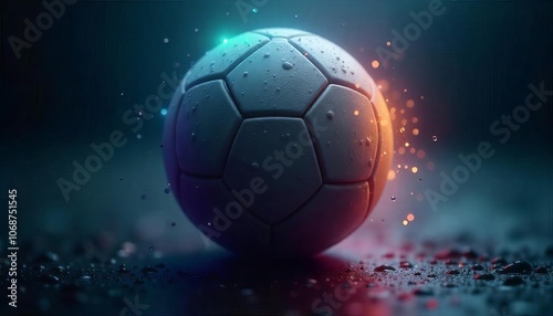 Fototapeta premium Soccer Ball with Vivid Red and Yellow Neon Highlights