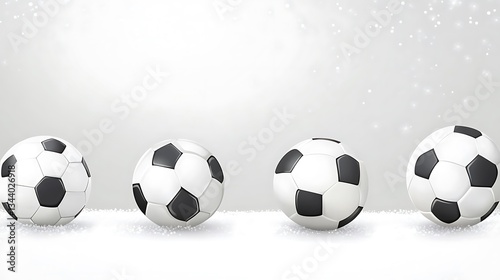 © Artelio, Fototapeta premium Soccer balls in snow with bokeh for winter sport