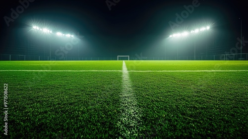 © Alexandr, Obraz premium Soccer Field at Night with Lights