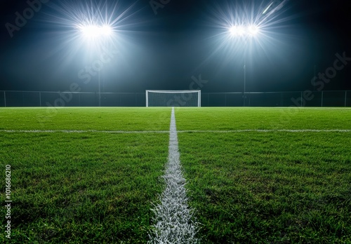 © warunthorn, Obraz premium Soccer Field Night Lights.