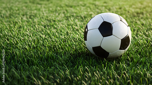 © bestphoto, Obraz premium Soccer football ball on green grass