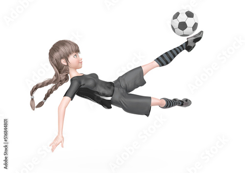 © DM7, Fototapeta premium soccer girl is doing acrobatics to kick the ball in white background