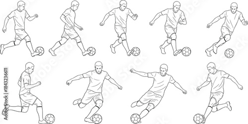 Fototapeta premium Soccer kick motion, football player sequence, sports technique illustration,...