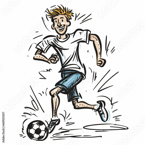 © B-design, Obraz premium Soccer player hand-drawn comic illustration. Football player. Vector doodle style cartoon illustration