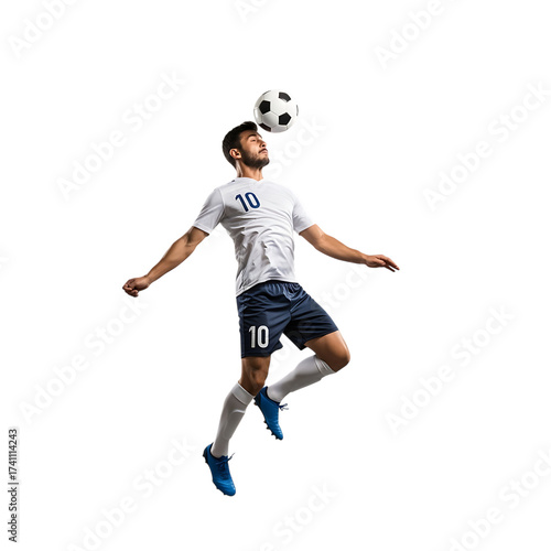 © Mahfuza, Fototapeta premium Soccer player heading ball isolated on transparent background
