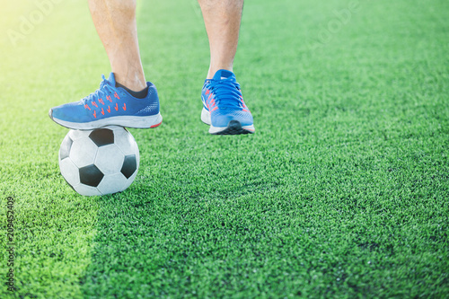 Fototapeta premium Soccer player jump and stomp for training
