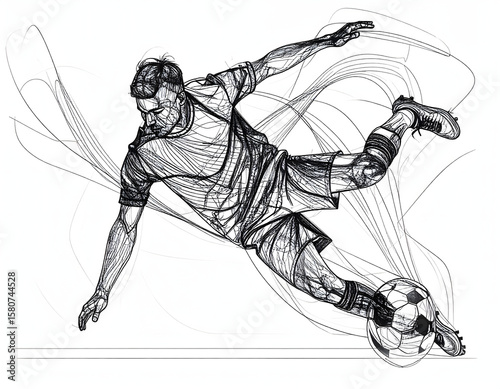 Fototapeta premium Soccer player kicking ball with dynamic lines illustration