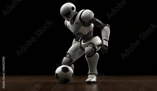 © Rahmat , Fototapeta premium soccer player robot kicking ball. robot action. Ai robot