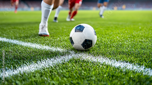 © Jiraphat.N, Fototapeta premium Soccer players strategically execute corner kick techniques outdoors