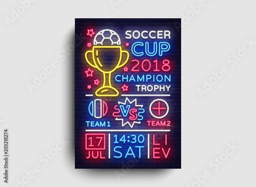 © Ivan, Fototapeta premium Soccer Tournament flyer vector. European Football Championship poster, neon sign, design template for brochure for soccer, invitation for soccer cup, light neon football advertisement. Vector