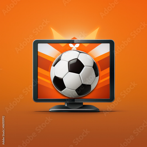 © Nataliya, Obraz premium Soccer tv symbol logo template illustration on orange background