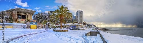 Obraz premium SOCHI, RUSSIA - JANUARY 26, 2016: Embankment in the snowy captivity.