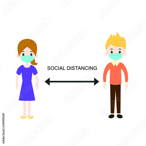 © Valerie Thang, Fototapeta premium Social Distancing Concept People Flat Vector Corona Virus Transmission Precaution