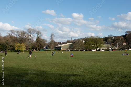 © Bryony, Fototapeta premium Social distancing in open park area in UK