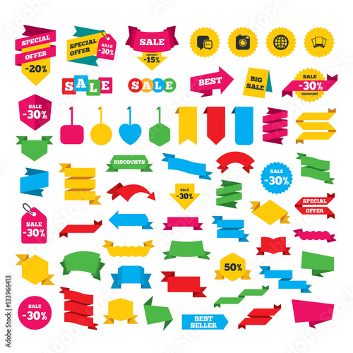 Fototapeta premium Social media icons. Chat speech bubble and Globe.