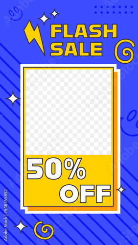 © Yasir Design, Fototapeta premium Social media story template in retro design style. Stories template with empty space for picture.