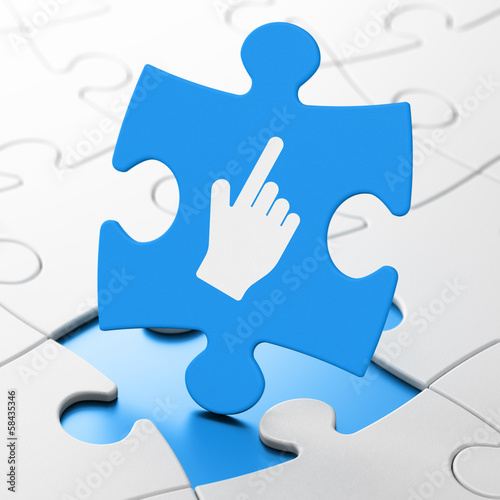 Obraz premium Social network concept: Mouse Cursor on puzzle background