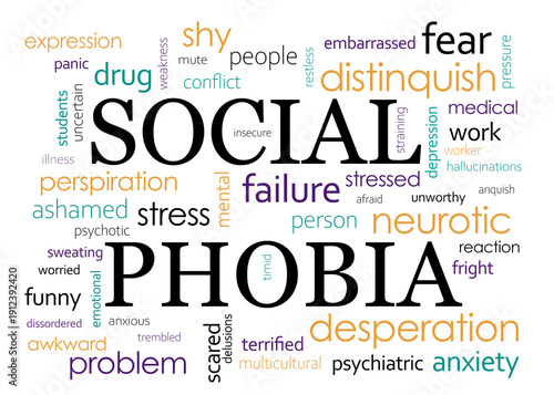 © New Africa, Obraz premium Social phobia, set of related terms. Many words on white background