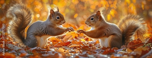 © Landscape Planet, Fototapeta premium Social Squirrels: Interaction Between Two Squirrels Post-Feeding.