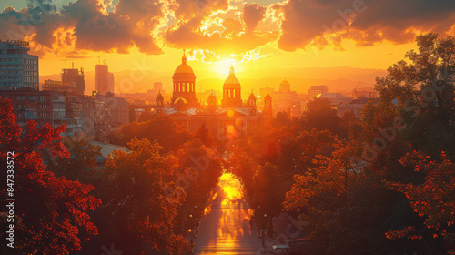 Fototapeta premium Sofia, Bulgaria city skyline created with Generative AI technology