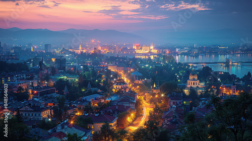 © Novanture, Obraz premium Sofia, Bulgaria city skyline created with Generative AI technology