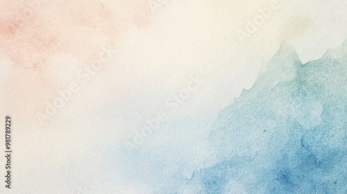 Fototapeta premium Soft abstract blue and peach watercolor wash background.