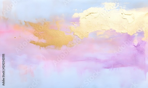© simba kim, Obraz premium Soft abstract illustration with subtle, small gold stencil patterns in sections. Generative AI
