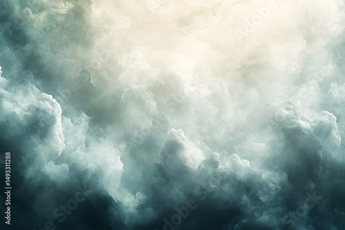© Audrey, Obraz premium Soft, abstract white clouds resembling watercolor on textured paper.