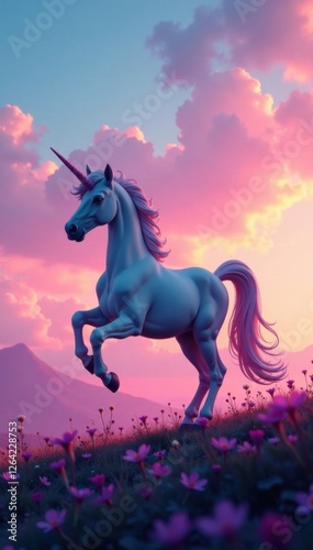© Prayoon, Fototapeta premium Soft and Dreamy Unicorn Silhouette Against Pastel Sky , sky, watercolor, dreamy
