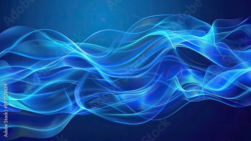 © Matcha_09, Obraz premium Soft and elegant blue neon waves flowing across a premium design backdrop, ideal for high-quality banners.