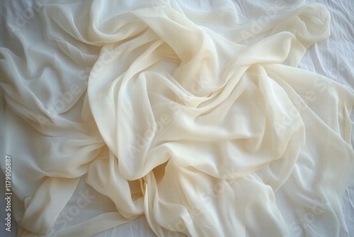 © AUAChanel, Fototapeta premium Soft and Flowing White Fabric Draped on a Light Background