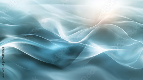 Obraz premium Soft and fluid waves of light in cool blue tones with hints of white,...