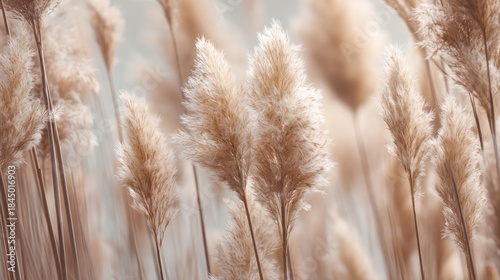 Fototapeta premium Soft beige pampas grass plumes with feathery texture natural dried botanical...