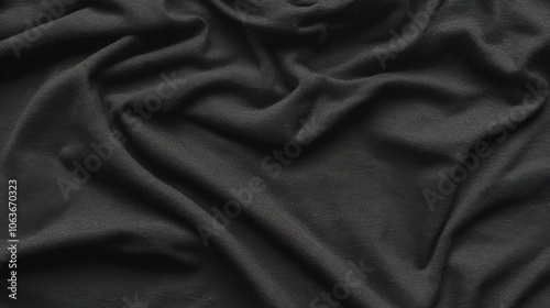 © Keopaserth, Obraz premium Soft black fabric draped elegantly, showcasing its smooth texture and rich color. Perfect for various clothing designs and textile projects