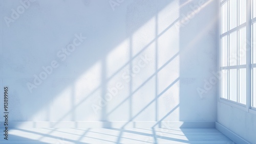 © Aku Creative, Obraz premium Soft blue empty room with window shadow