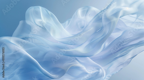 Obraz premium Soft Blue Fabric Flowing with Light Waves in Abstract Background..