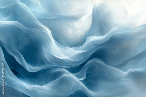 © ChaoticMind, Obraz premium Soft blue fabric waves create an ethereal and calming atmosphere in an abstract design