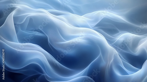 © Рудой Максим, Obraz premium Soft blue fabric waves gently flowing, creating a serene and tranquil atmosphere in a dreamy backdrop