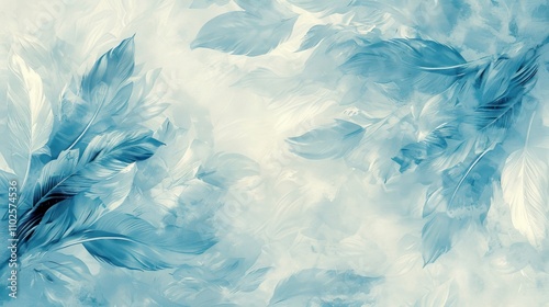© hazia, Obraz premium Soft blue feather design, abstract background.