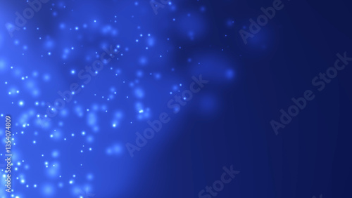 © Vooper, Fototapeta premium Soft blue shiny magic particles moving up. Smooth bokeh floating glowing dust on dark motion background.