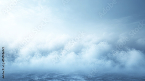 Obraz premium Soft blue sky with fluffy white clouds creating calm and peaceful atmosphere, showing subtle gradient from light to deeper blue tones in background