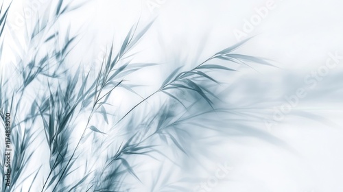 © Alfath, Fototapeta premium Soft, blue-toned grasses against a white background.