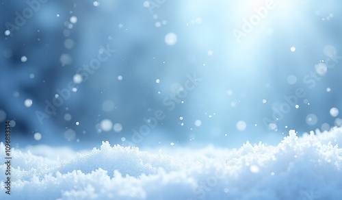 © Galeno, Naklejka premium soft blue winter scene features gentle falling snowflakes amidst peaceful snowy landscape delicate frozen crystals icy tones