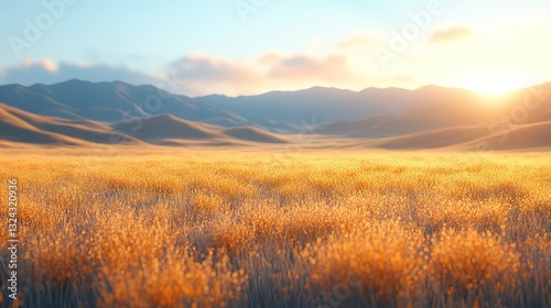 Obraz premium Soft, blurred hills and gently swaying dry grass create a serene, peaceful...