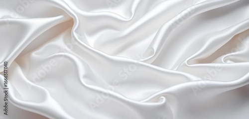 Fototapeta premium Soft, blurred white-gray satin texture; shimmering silver silk panorama, drape, background