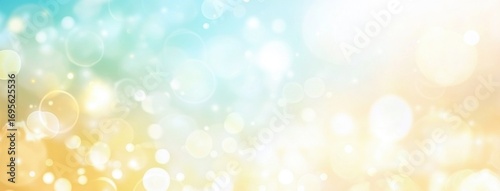 Obraz premium Soft bokeh background with a gentle gradient transitioning from light blue to yellow, creating a warm and uplifting atmosphere.