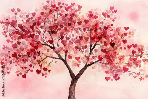 Fototapeta premium Soft Brown Tree with Heart-Shaped Leaves on a Gentle Background